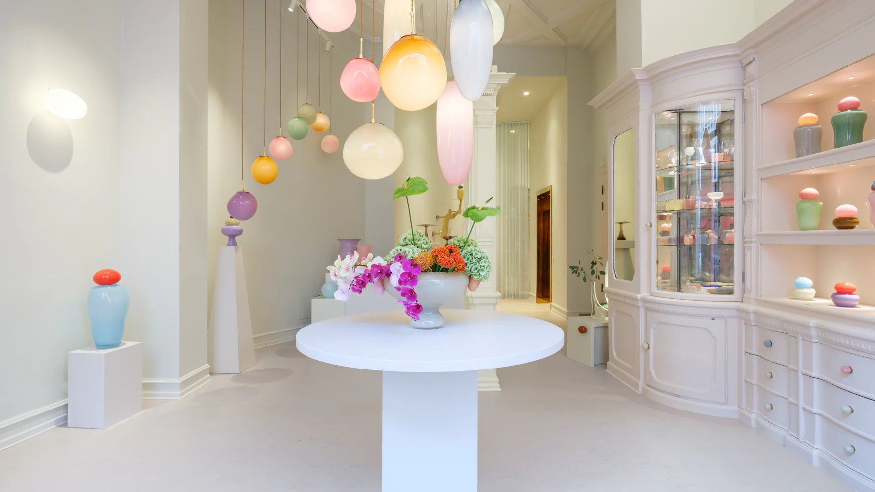 甘く柔らかな色彩や有機的フォルムは、空間に視覚的なアクセントを与え、現代的な住宅や商業空間とも相性が良い一方で、単なる装飾にとどまらない鑑賞性を備えています。